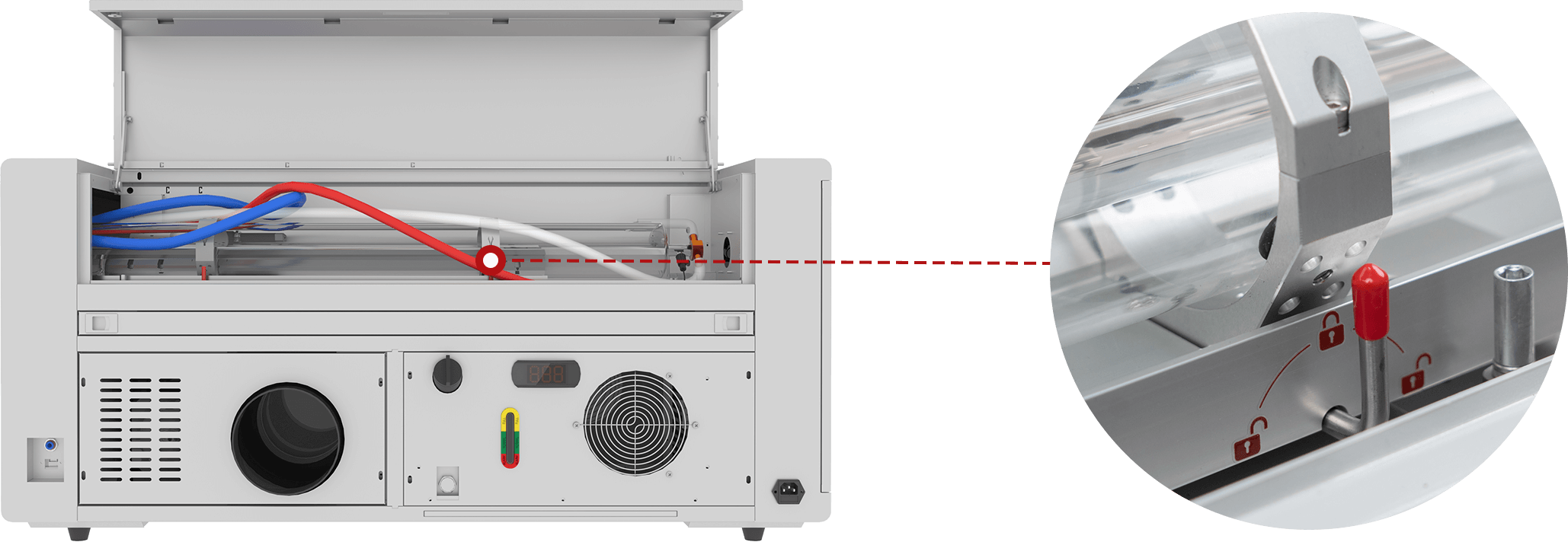 Say goodbye to painstaking tube replacements and aligning the laser path. This innovative approach allows for swapping of tubes in and out of your Aeon laser, without having to renegotiate the beam path.
