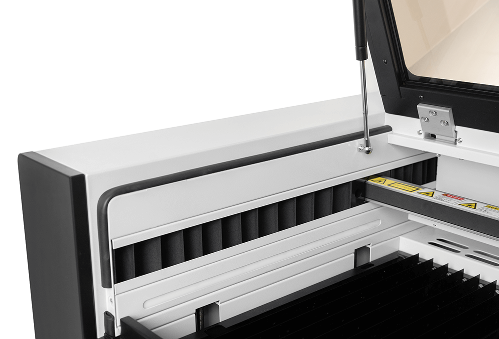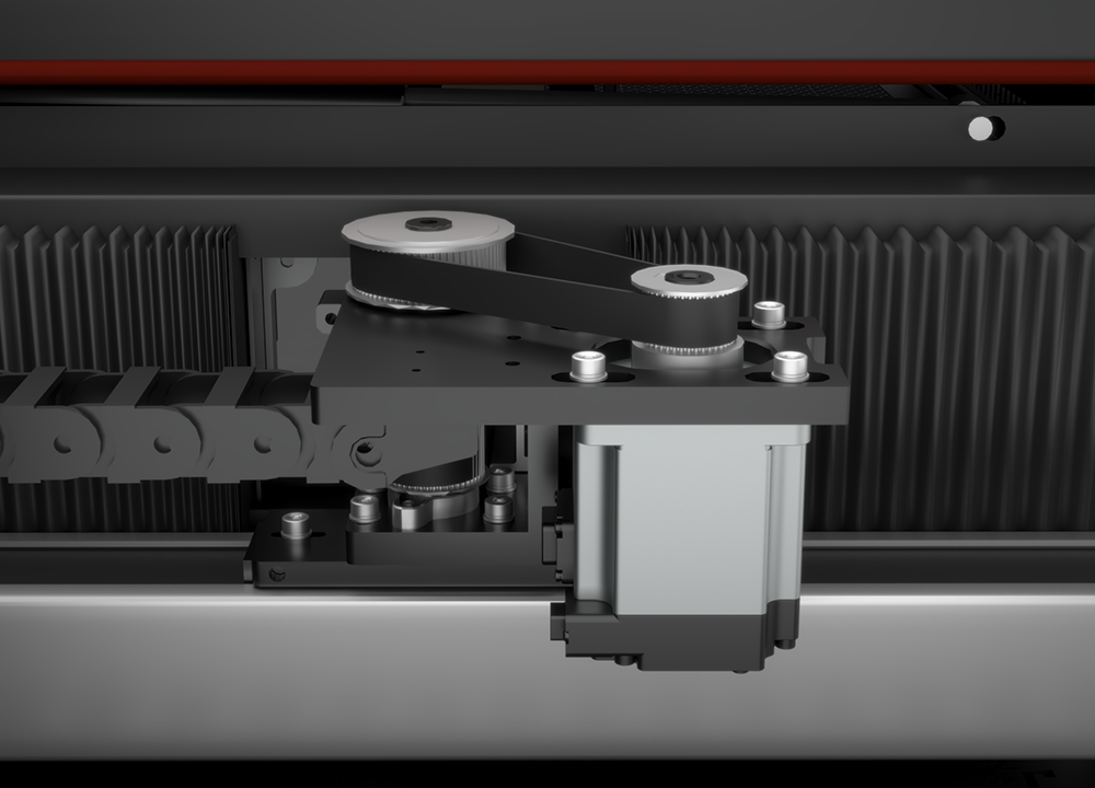Not only are the linear rails and bearing blocks enclosed, but protective curtains on the left and right side rails now prevent unwanted parti cles from spreading beyond your work area. This can significantly prolongs rail lifespan and greatly enhances cutting and engraving quality.