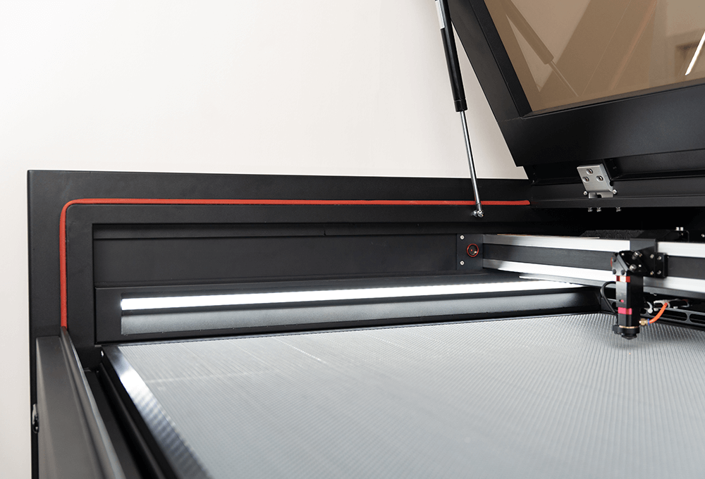 Not only are the linear rails and bearing blocks enclosed, but protective curtains on the left and right side rails now prevent unwanted parti cles from spreading beyond your work area. This can significantly prolongs rail lifespan and greatly enhances cutting and engraving quality.