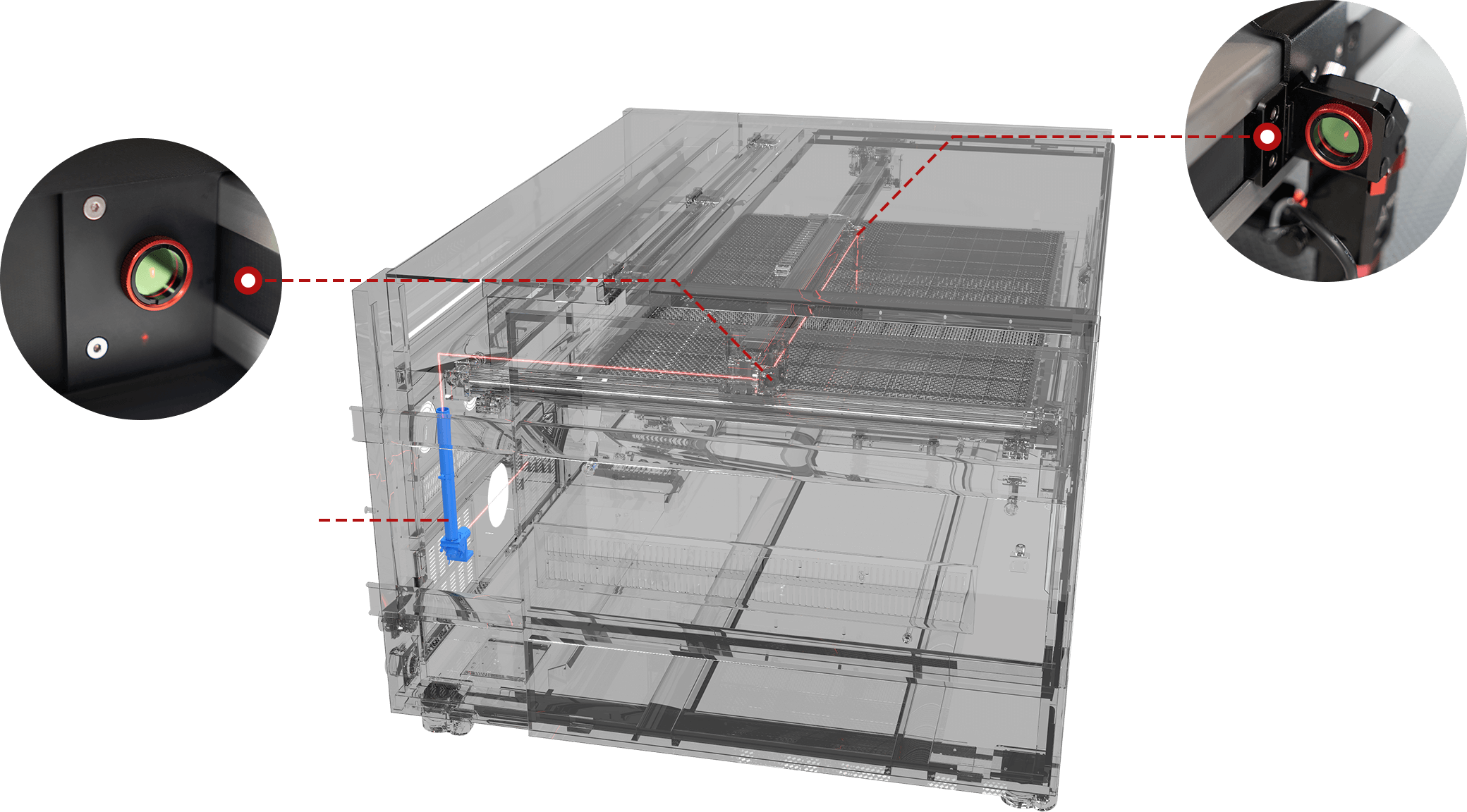 AEON's engineers are using every possible method to combat dust and extend the lifespan of optical parts. We enclosed the laser path with aluminum tubes and added protective lenses for the mirrors. This will considerably reduce the maintenance frequency and extend the life span of your laser tubes, mirrors and lenses.