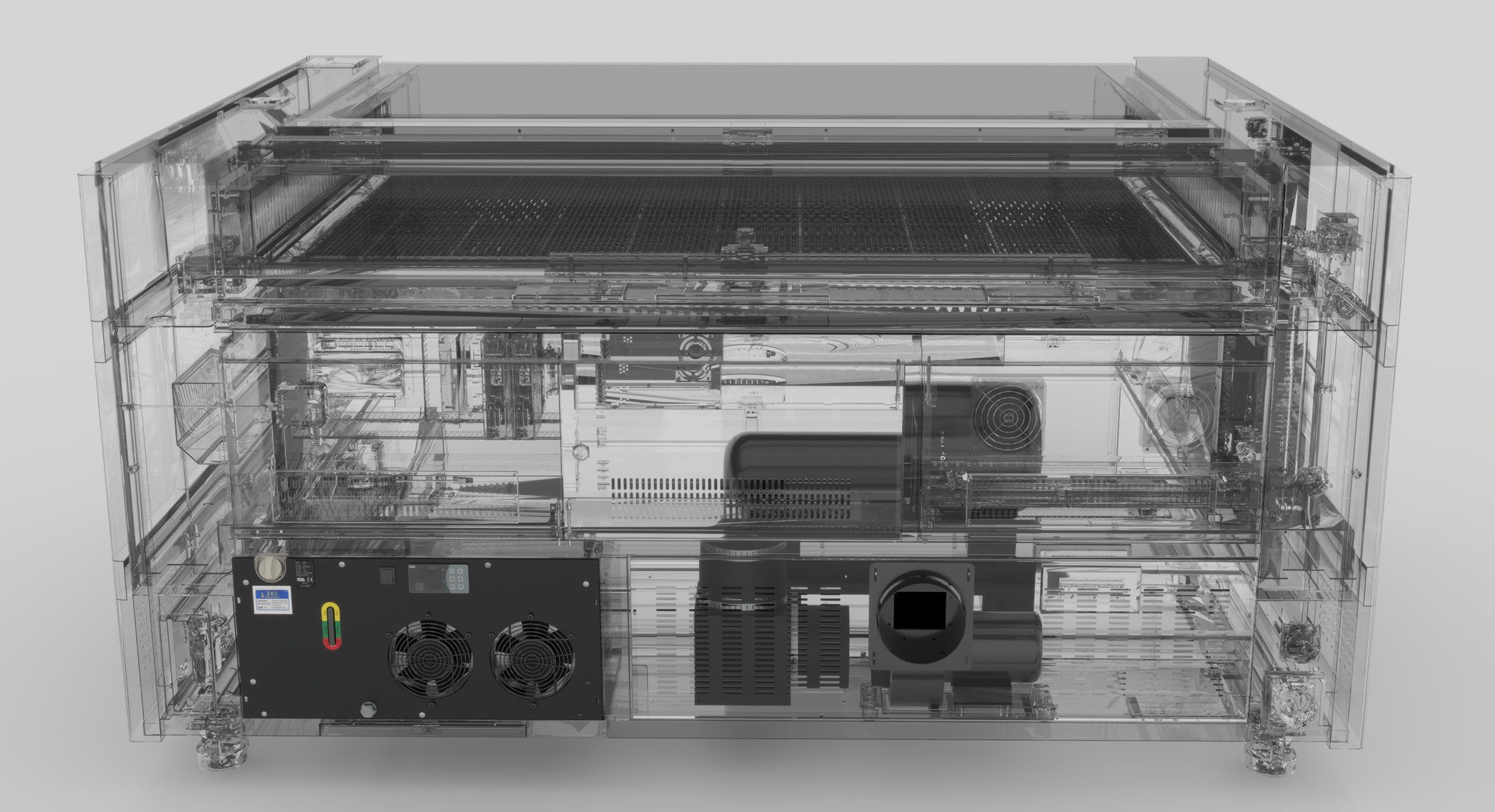 If space is of concern, you'll be pleased to know that Aeon is the first in the laser industry to offer an all-in-one solution comprised of an integrated water cooling system, exhaust fan and air assist pump so that no extra space is needed for ancillary components, minimizing the footprint of the machine and making your workspace neater and more organized.