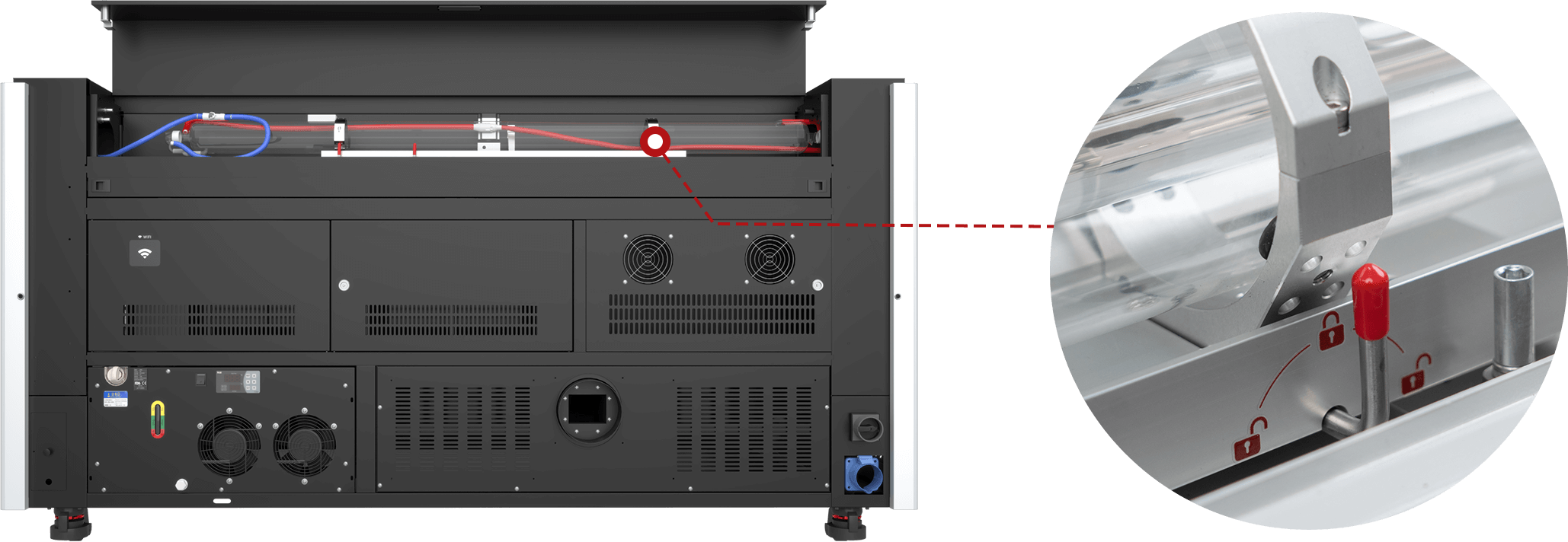 Say goodbye to painstaking tube replacements and aligning the laser path. This innovative approach allows for swapping of tubes in and out of your Aeon laser, without having to renegotiate the beam path.