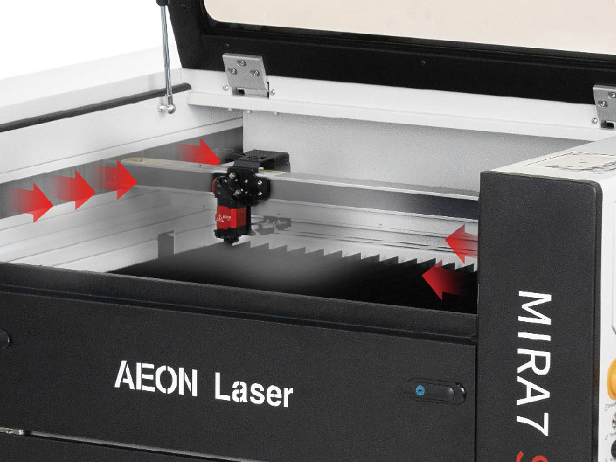Linear guide rails with ball bearings offer greater precision and smoother motion, which improves print quality and longevity. Further, AEON Laser has been conducting rigorous test on all kinds of rails for over 7 years, and selected the most rigid one to meet the requirements for high speed and high precision.